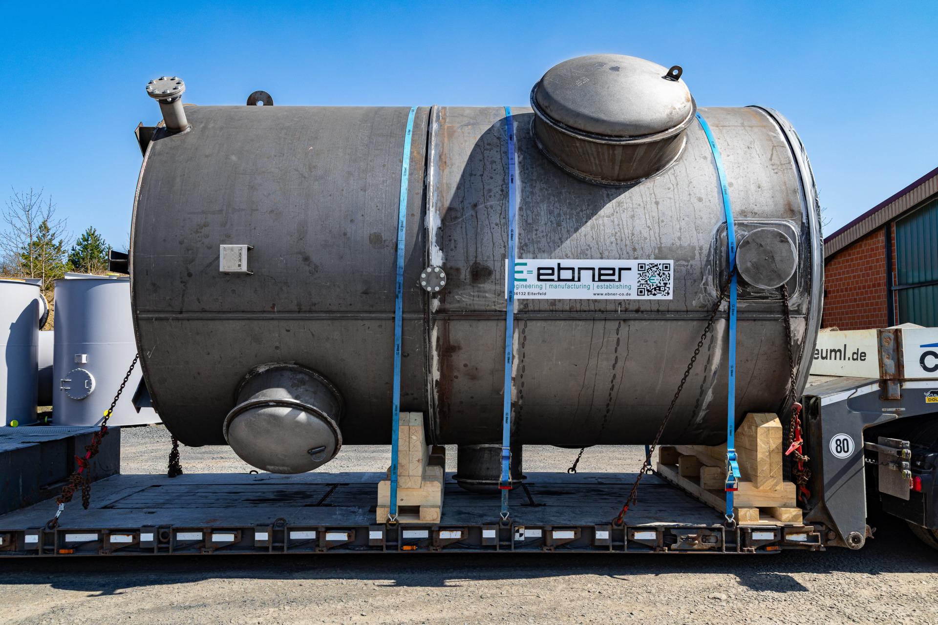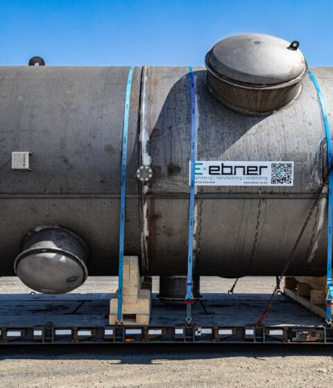 EBNER received this order at the beginning of October 2024 from a long-standing customer for whom EBNER has also supplied plant components in the past. The order is for a heat exchanger made of carbon steel with a diameter of 3,200 mm and a length of seamless tubes of nearly 3,000 mm. The total weight is approx. 22 tons. This heat exchanger is completely insulated and was therefore designed without a coating (e.g. primer) at the customer’s request. The heat exchanger has now been delivered to the customer on schedule.